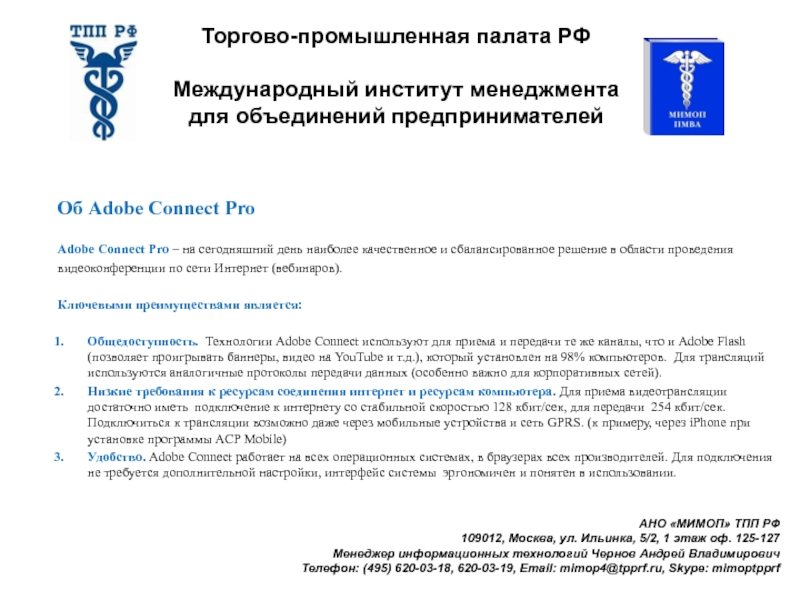Телефон: (495) 620-03-18, 620-03-19, Email: mimop4@tpprf.ru, Skype: mimoptpprf