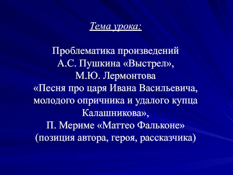 Тема – месть, как смысл человеческой жизни. Герой - романтический с болезненным самолюбием. Языковые средства: лаконичность изложения, разговорные интонации.