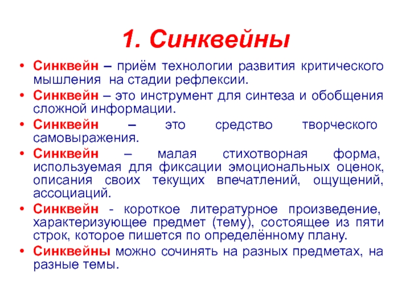 Синквейн – это инструмент для синтеза и обобщения сложной информации.