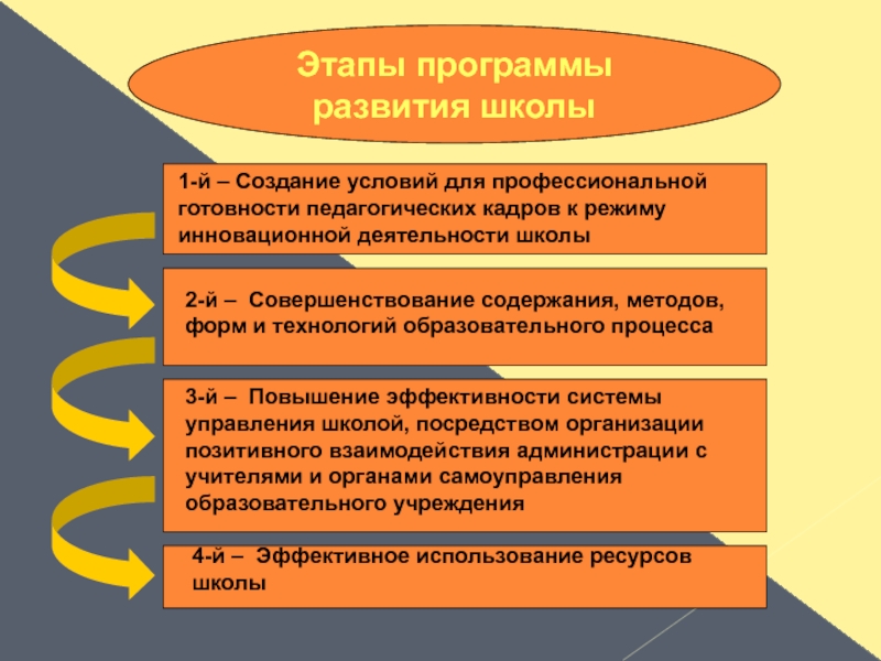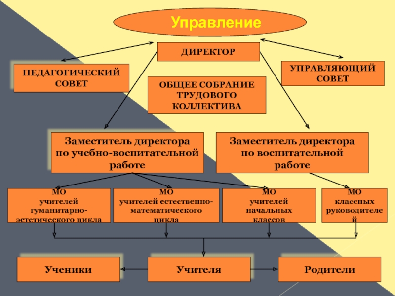 3-й – Повышение эффективности системы управления школой, посредством организации позитивного взаимодействия администрации с учителями и органами самоуправления образовательного учреждения