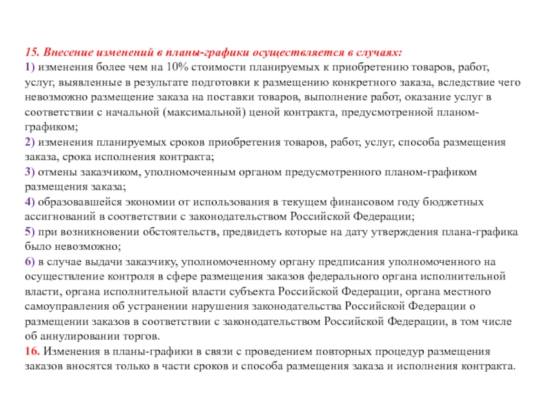 Слайд 1415. Внесение изменений в планы-графики осуществляется в случаях: