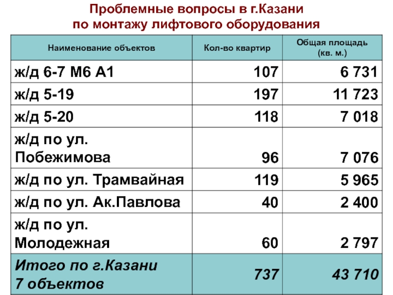 Слайд 7Проблемные вопросы в г.Казани по монтажу лифтового оборудования