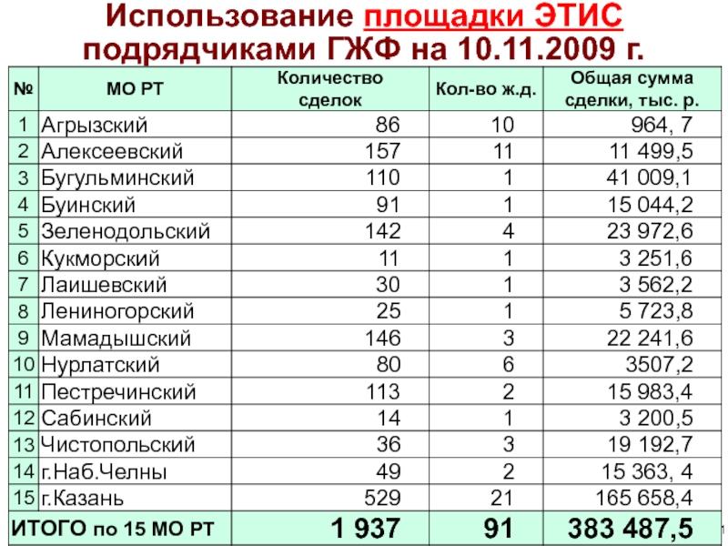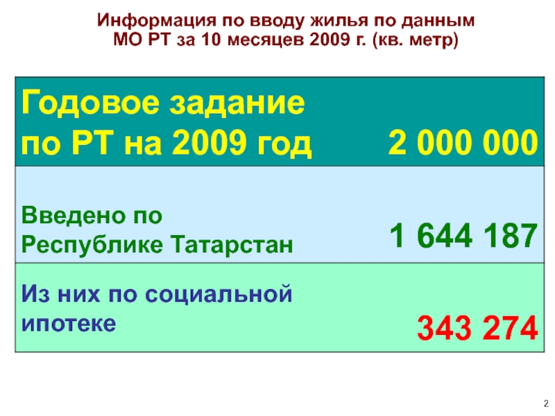 Ввод жилья в Республике Татарстан в 2009 году 12 ноября 2009 года презентация