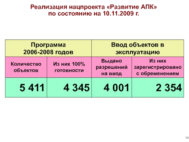Слайд 14Реализация нацпроекта «Развитие АПК»