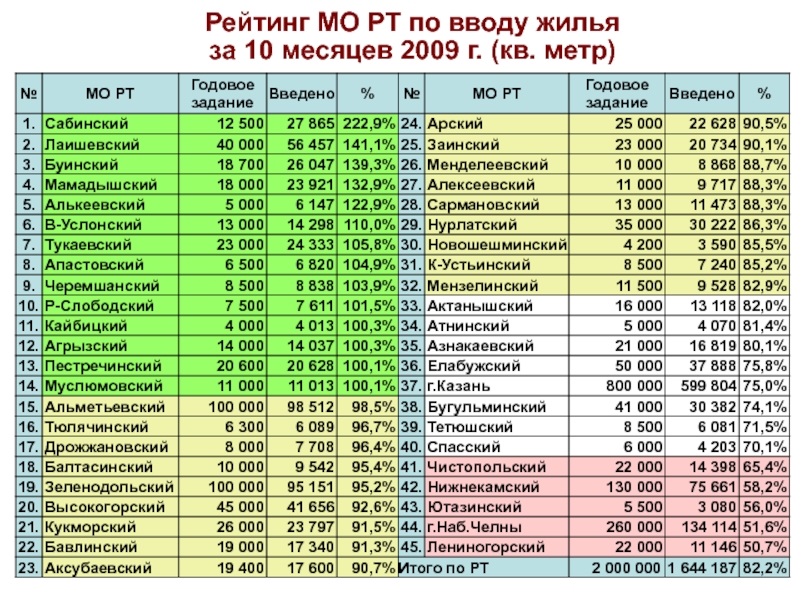 Слайд 3Рейтинг МО РТ по вводу жилья