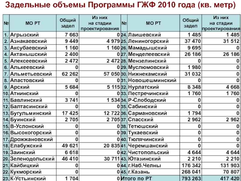 Слайд 8Задельные объемы Программы ГЖФ 2010 года (кв. метр)