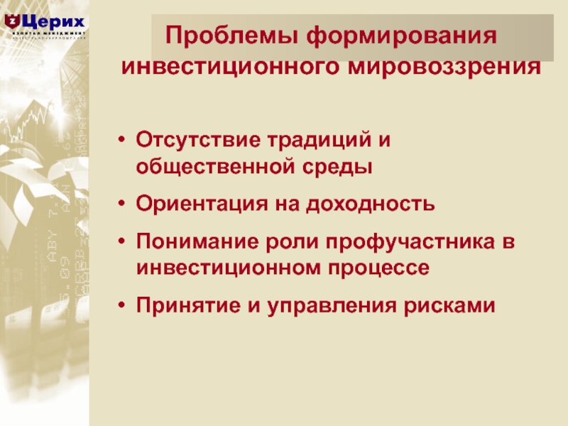 Проблемы формирования инвестиционного мировоззрения
