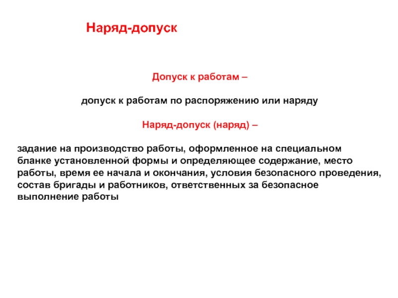 бланке установленной формы и определяющее содержание, место работы, время ее начала и окончания, условия безопасного проведения, состав бригады и работников, ответственных за безопасное выполнение работы