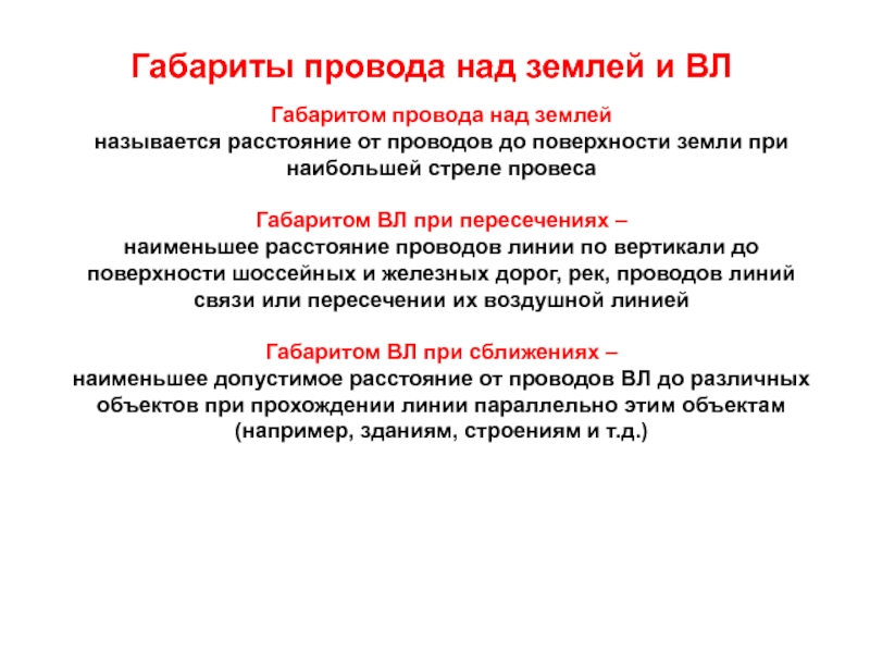 Слайд 7Габариты провода над землей и ВЛ по ПУЭ