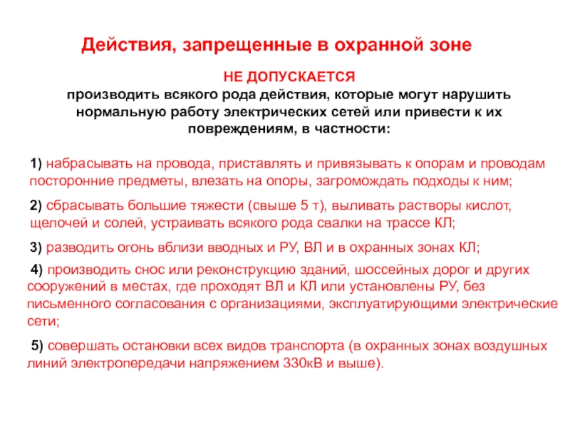 5) совершать остановки всех видов транспорта (в охранных зонах воздушных линий электропередачи напряжением 330кВ и выше).