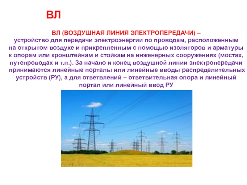 ВЛ (ВОЗДУШНАЯ ЛИНИЯ ЭЛЕКТРОПЕРЕДАЧИ) –