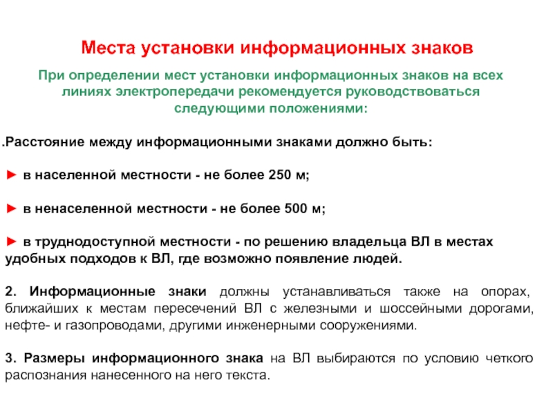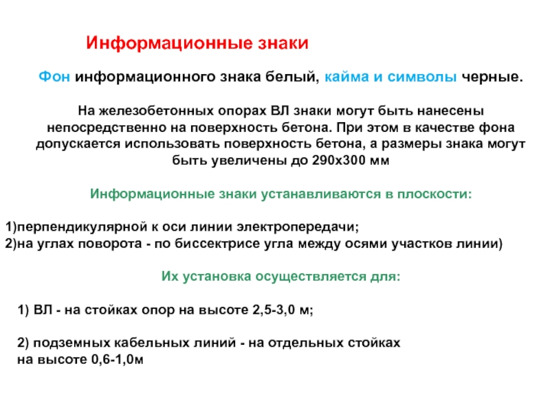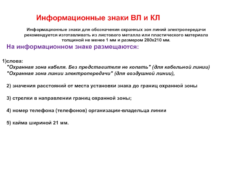 ► плакаты, на которых указаны расстояния от опоры ВЛ до кабельной