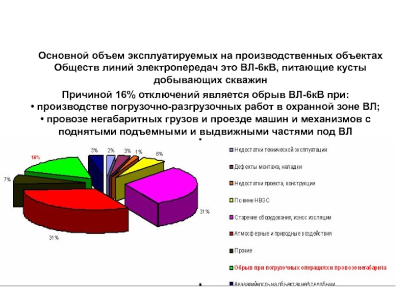 Причиной 16% отключений является обрыв ВЛ-6кВ при: