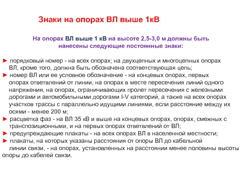 ► предупреждающие плакаты - на всех опорах ВЛ в населенной местности;