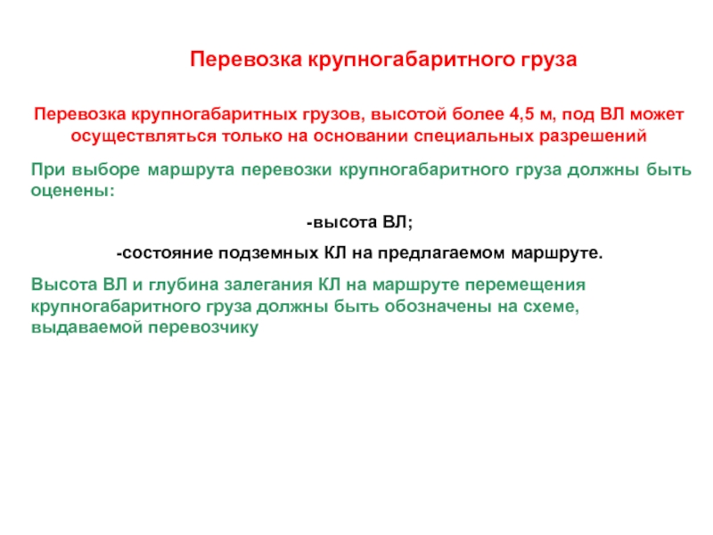 Высота ВЛ и глубина залегания КЛ на маршруте перемещения крупногабаритного груза должны быть обозначены на схеме, выдаваемой перевозчику