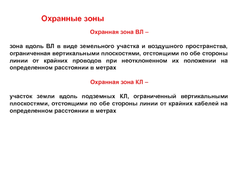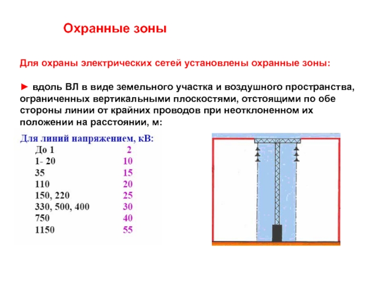 и воздушного пространства, ограниченная вертикальными плоскостями, отстоящими по обе стороны линии от крайних проводов при неотклоненном их положении на определенном расстоянии в метрах