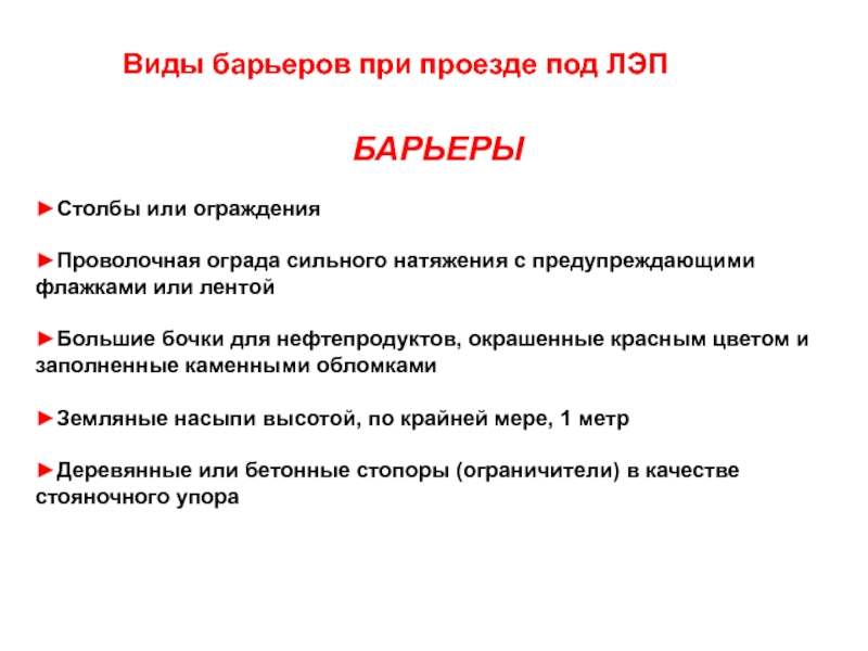 Слайд 24Виды барьеров при проезде под ЛЭП