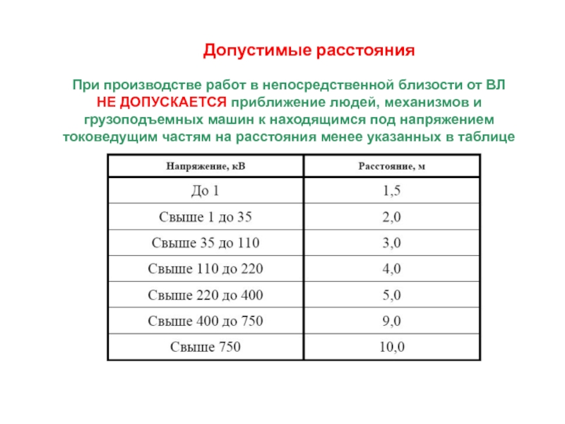 наименьшее допустимое расстояние от проводов ВЛ до различных