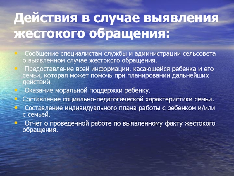 Отчет о проведенной работе по выявленному факту жестокого обращения.