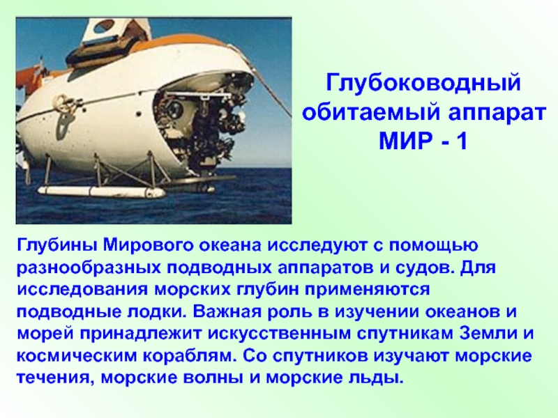 5. В настоящее время в крупных международных экспедициях участвуют десятки судов, подводные аппараты, самолеты и даже спутники Земли.