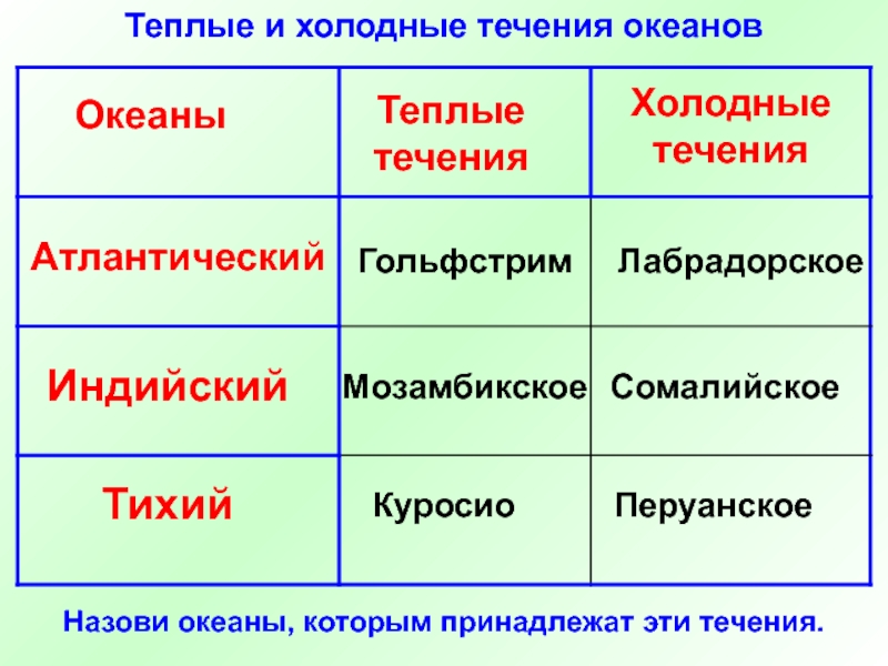 3. Чем различаются теплые и холодные течения?