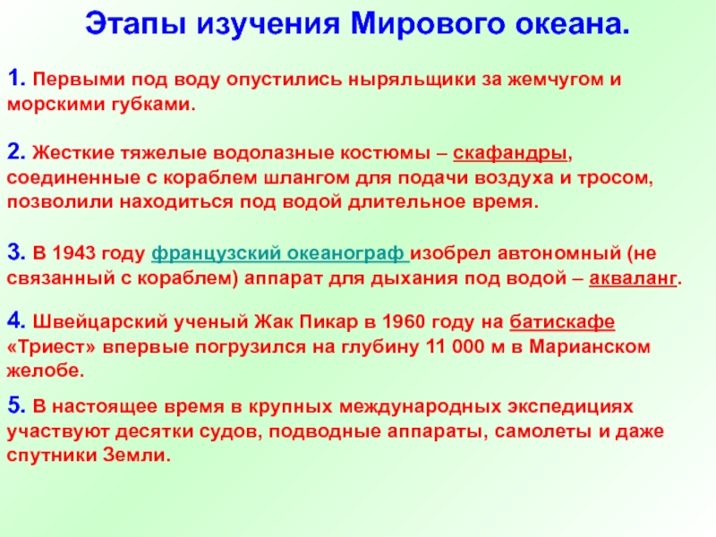 8. Изучение Мирового океана расширяет возможности использования его ресурсов для нужд человека.