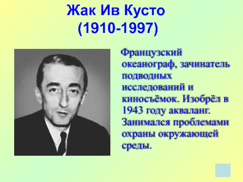 3. В 1943 году французский океанограф изобрел автономный (не связанный с кораблем) аппарат для дыхания под водой – акваланг.