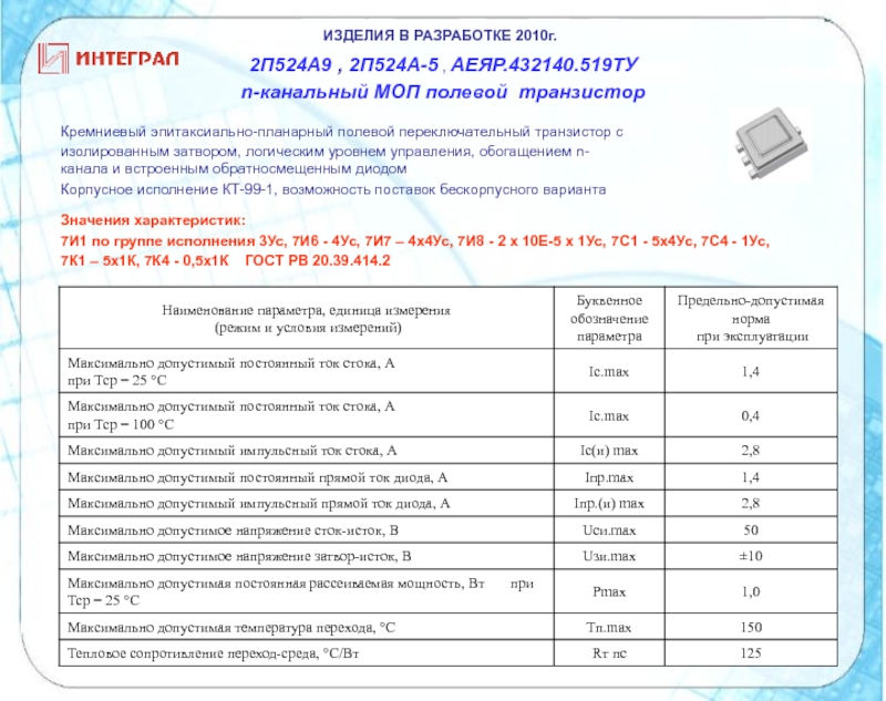 Кремниевый эпитаксиально-планарный полевой переключательный транзистор с