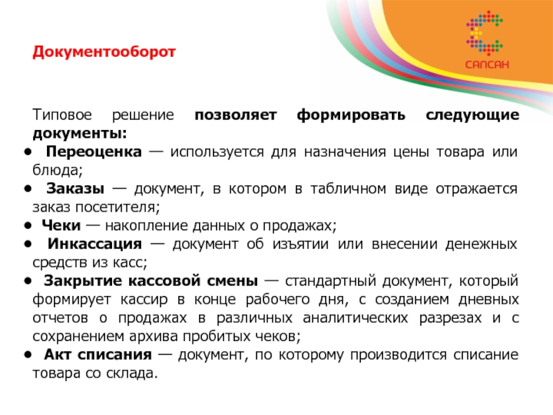 блок документов, позволяющий отразить в программе самые сложные схемы движения товаров и блюд;