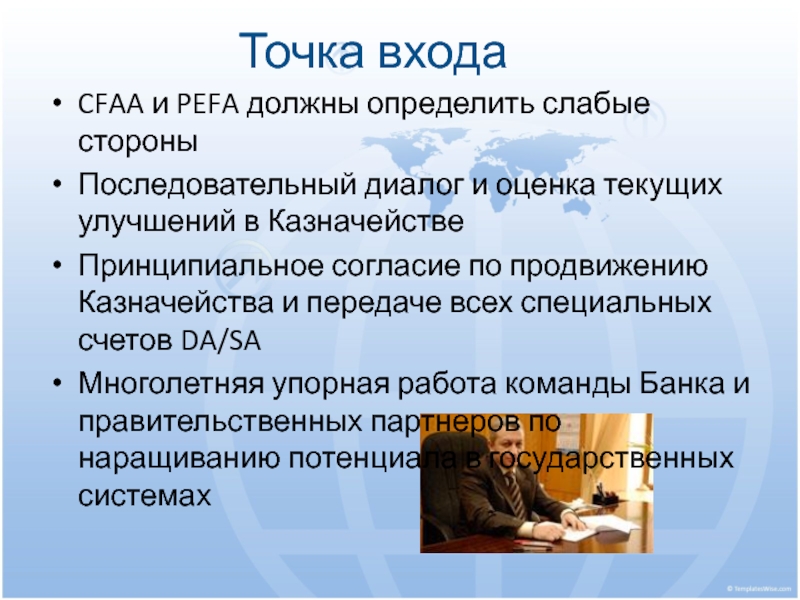 Принципиальное согласие по продвижению Казначейства и передаче всех специальных счетов DA/SA