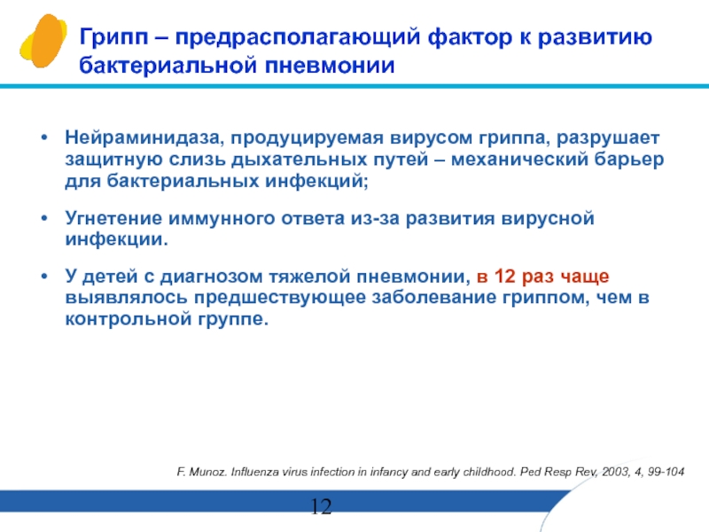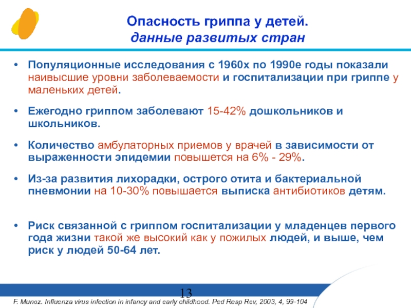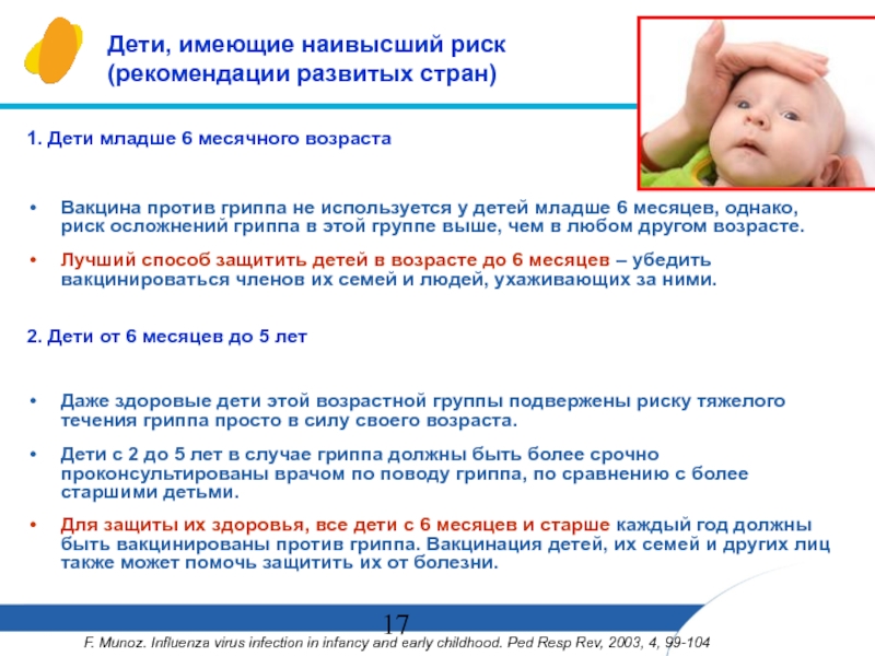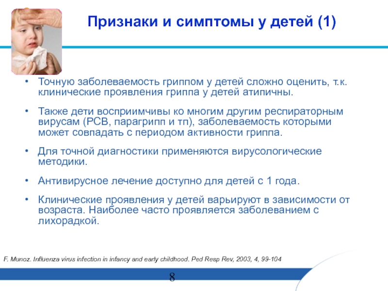 F. Munoz. Influenza virus infection in infancy and early childhood. Ped Resp Rev, 2003, 4, 99-104