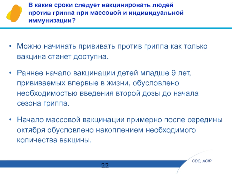 Раннее начало вакцинации детей младше 9 лет, прививаемых впервые в жизни, обусловлено необходимостью введения второй дозы до начала сезона гриппа.