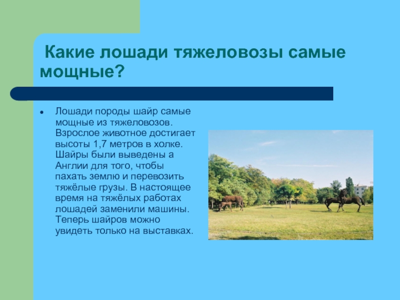 Слайд 57 Какие лошади тяжеловозы самые мощные?