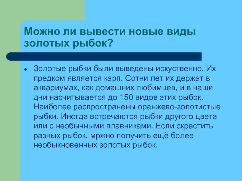 Слайд 52Можно ли вывести новые виды золотых рыбок?