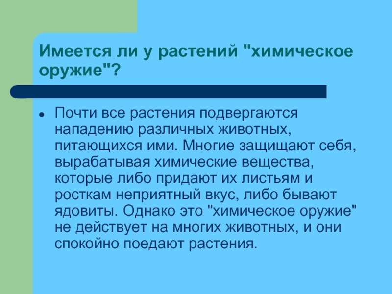 Слайд 31Имеется ли у растений "химическое оружие"?