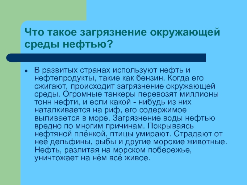 Слайд 47Что такое загрязнение окружающей среды нефтью?