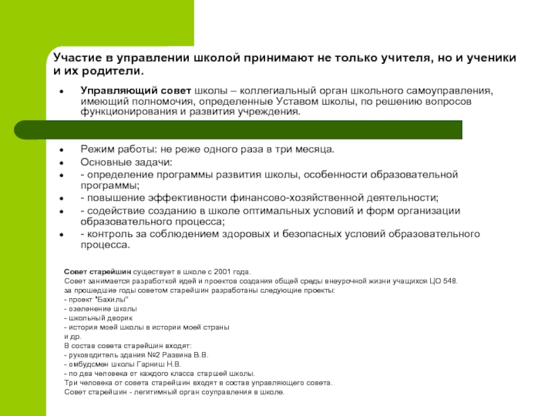 Управляющий совет школы – коллегиальный орган школьного самоуправления, имеющий полномочия, определенные Уставом школы, по решению вопросов функционирования и развития учреждения.