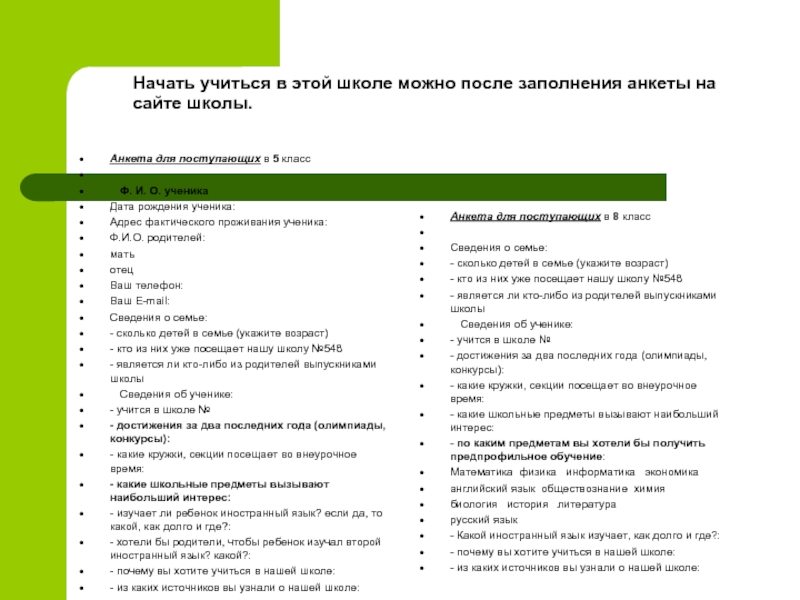 - по каким предметам вы хотели бы получить предпрофильное обучение: