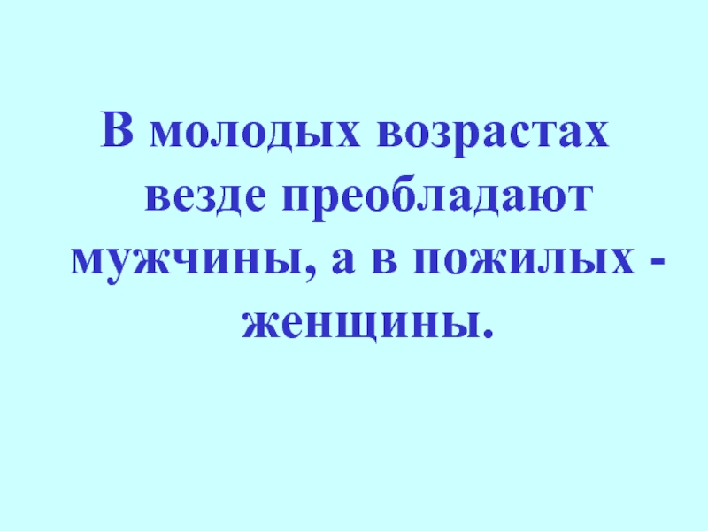 Слайд 134В молодых возрастах везде преобладают мужчины, а в пожилых - женщины.