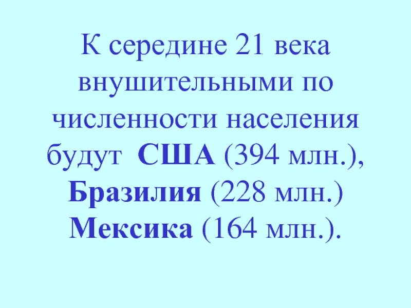 8 – Америка останется относительно стабильным регионом с умеренным ростом численности населения крупнейших стран.