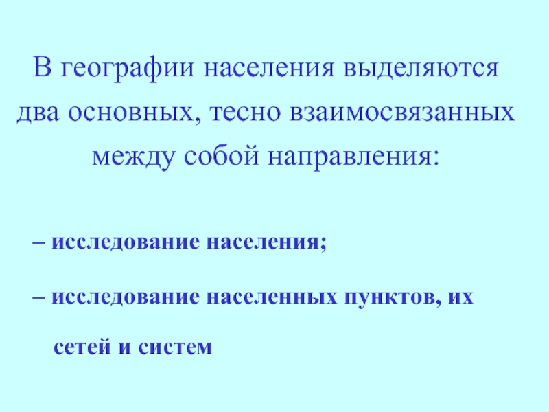 Слайд 17В географии населения выделяются два основных, тесно взаимосвязанных между собой направления:
