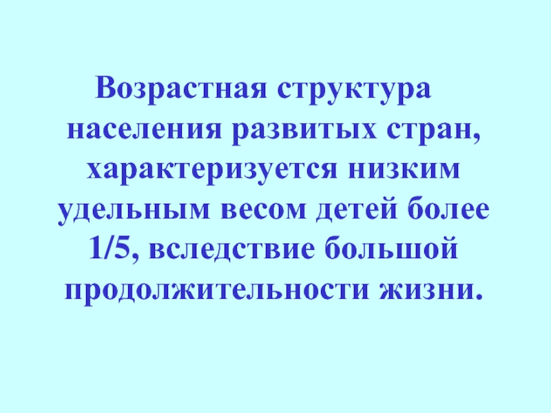 Слайд 137Возрастная структура населения развитых стран, характеризуется низким удельным весом детей более