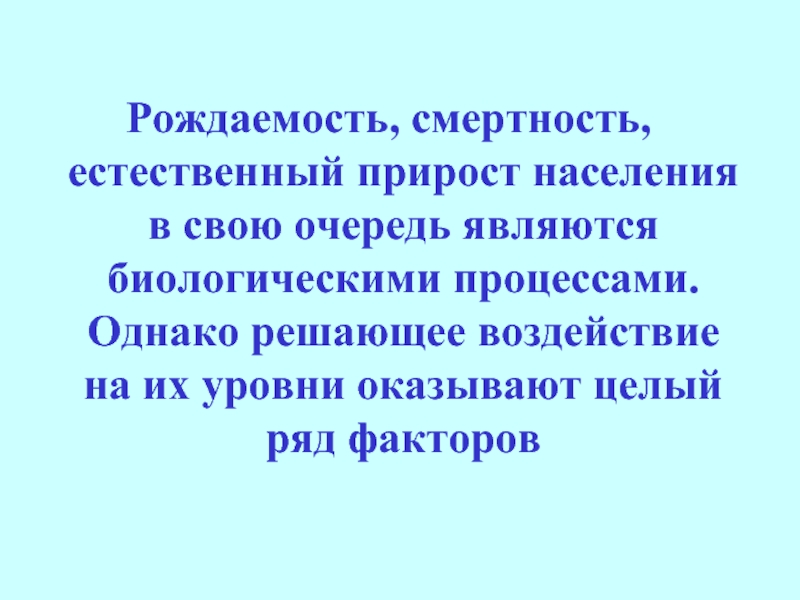 Слайд 118Рождаемость, смертность, естественный прирост населения в свою очередь являются биологическими процессами.
