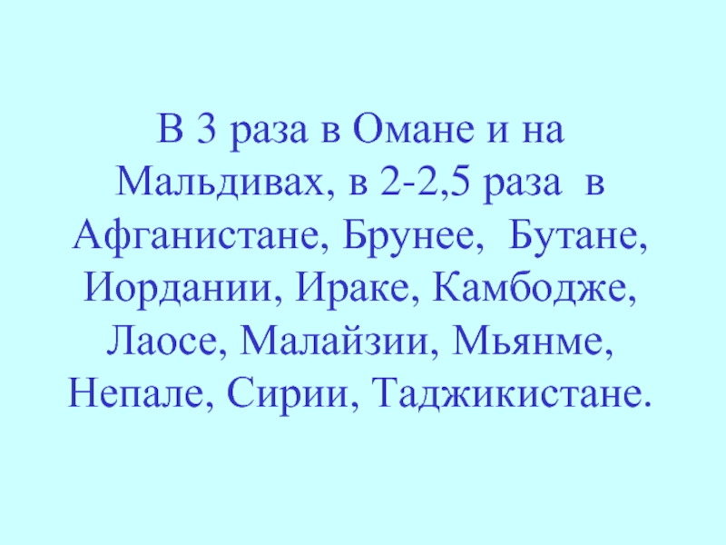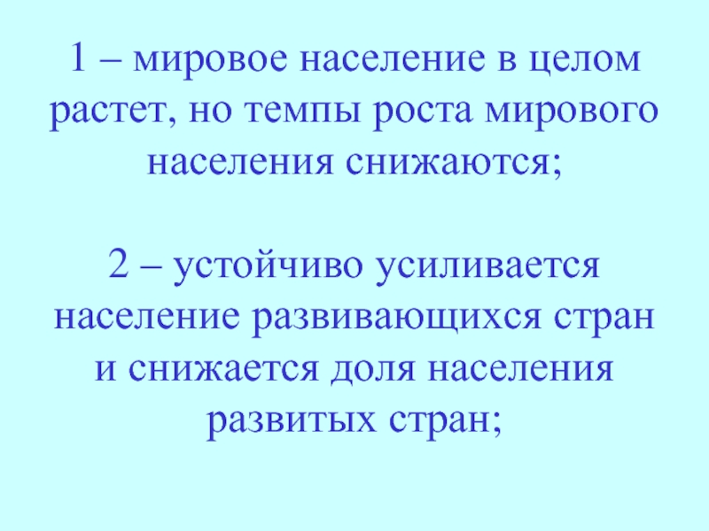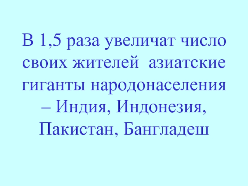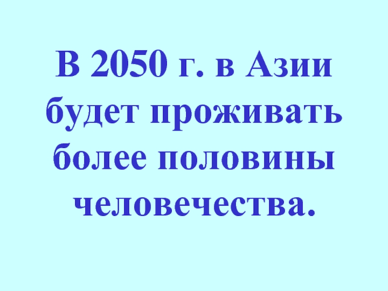 6 – в 1,4 раза население возрастет в Азии, Америке, Австралии и Океании (264 млн.). В то же время Азия – гигант, замедляющий темпы прироста населения.