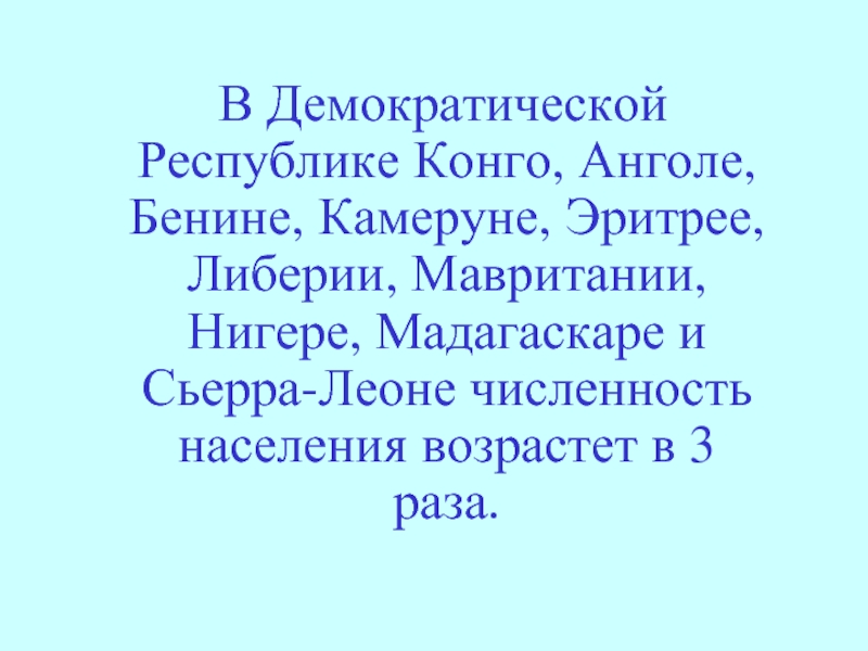 Слайд 1117 – резко обозначится африканский фактор. В Африке численность населения увеличится