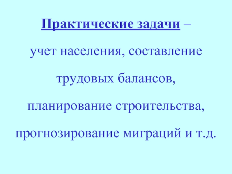 учет населения, составление трудовых балансов, планирование строительства, прогнозирование