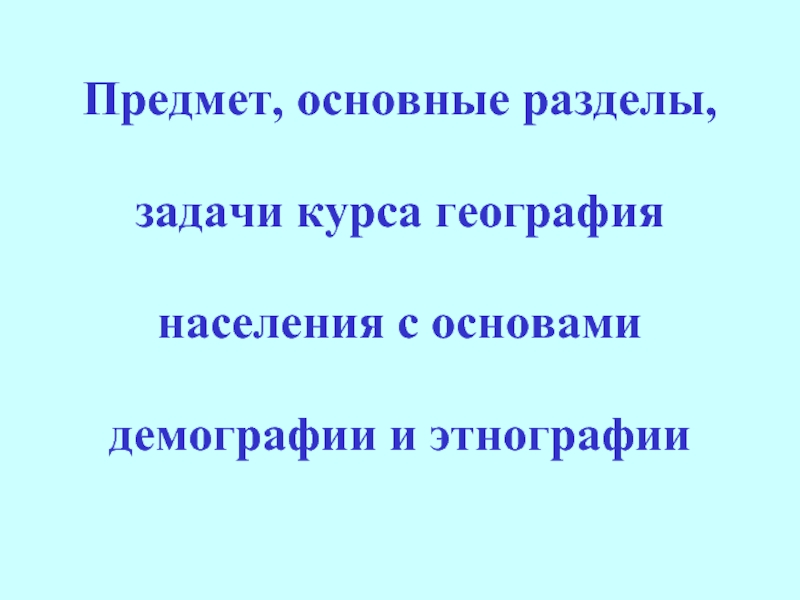 Слайд 6Предмет, основные разделы, задачи курса география населения с основами демографии и