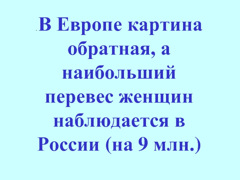 Слайд 133. В Европе картина обратная, а наибольший перевес женщин наблюдается в