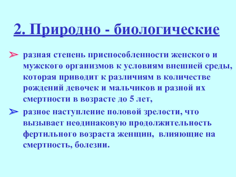 Слайд 121разная степень приспособленности женского и мужского организмов к условиям внешней среды,