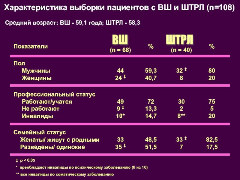 Для выборки эпидемиологического исследования и выборки послеоперационных психозов – НЕ ПРЕДУСМОТРЕНЫ